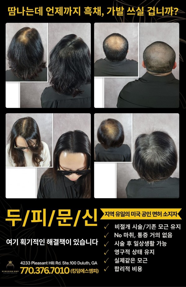 안녕하세요 Kingdom SMP, 지역 유일의 자격증(Licensed/Certified)보유 두피문신 전문샵 입니다.