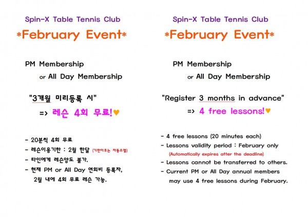 @@@@@ Spin-X 탁구클럽 2월 이벤트 @@@@@@