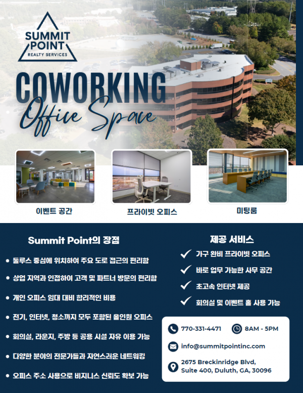 써밋포인트 공용사무실 단기/장기렌트 둘루스 중심가 위치