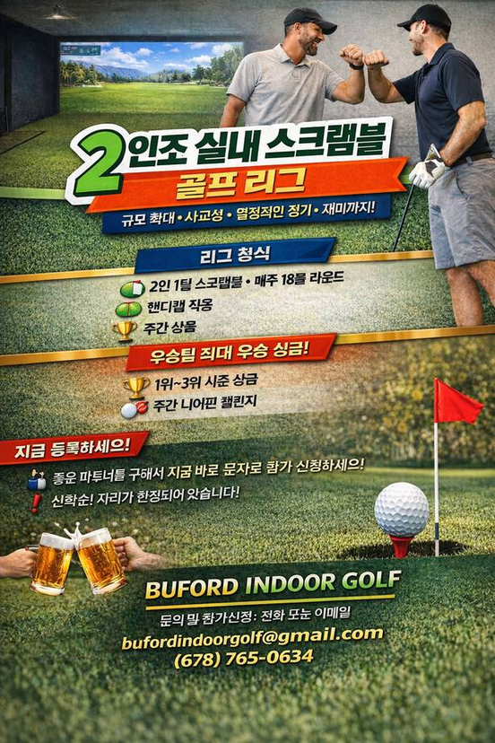 문의: bufordindoorgolf@gmail.com / 678-765-0634