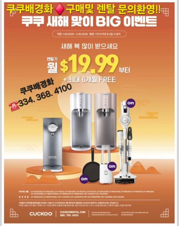 ♦️쿠쿠정수기-배경화♦️26년 2월 프로모션이 곧 끝나가요!! 2/26까지 궁금한점 연락주세요~