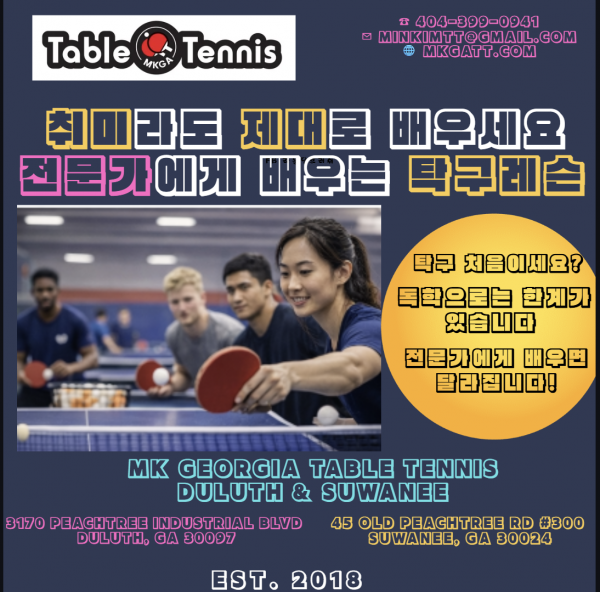 (구글지도에서 MK Georgia Table Tennis Suwanee로 검색하세요)