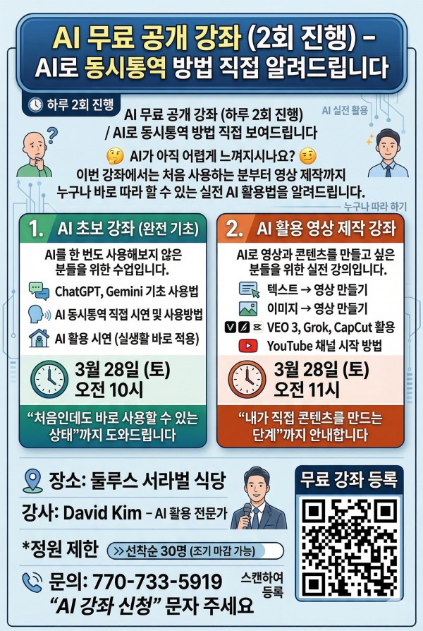 *** AI 무료 공개 강좌 2회 지금 신청하세요!– AI로 동시통역 방법 직접 알려드립니다. 1. AI 초보 강좌 (완전 기…