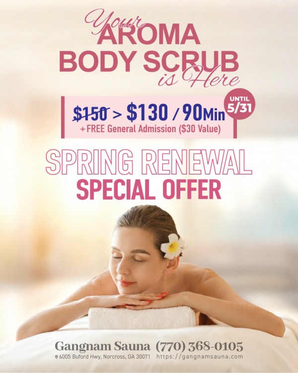 #GangnamSauna #AtlantaSpa #SpringRenewal #KBeauty #BodyScrubATL #AromaTherapy #NorcrossGA #AtlantaWellness #SelfCareRitual #GlowUp #LuxurySpaATL #SpringDeals