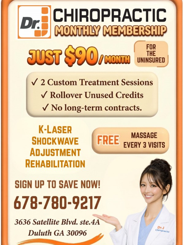 둘루스에 위치한 Dr. J Chiropractic에서 보험 없이도 이용 가능한 멤버십 프로그램 운영하고 있습니다.