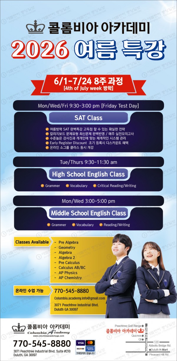 ***콜롬비아 아카데미 2026 여름방학 특강***