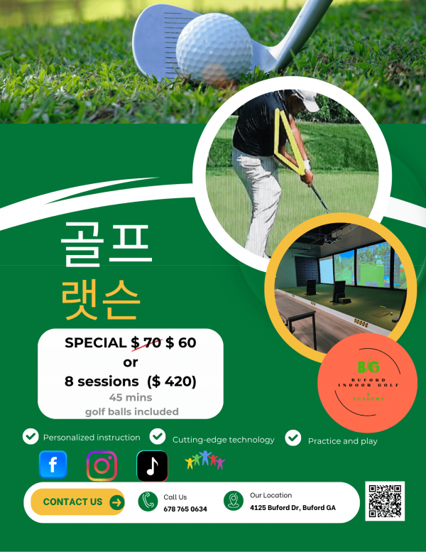 BUFORD INDOOR GOLF 에서 골프 랫슨 합니다. 추은 겨울에 따스한 인도어에서 새로운 폼을 잡아 보세요 !