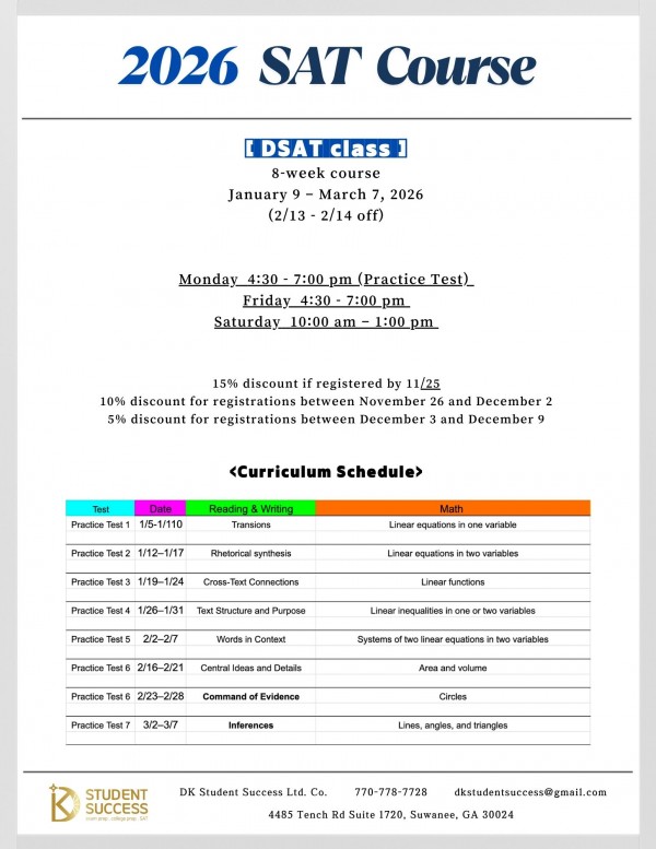 SAT의 본질 SAT 공부를 하려면 꼭 알아야 되는 기초적인 멘탈과 습관부터, 시간 관리, 유형별 접근, 오답 정리, Desmos의 사용이번 연도 8월 최근 추가된 유형 문제 접근까지 핵심만 집어 진행될 예정입니다