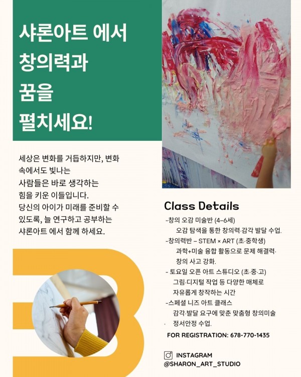 예술로 생각하는 아이, 여기서 시작됩니다. 샤론아트에 오세요.