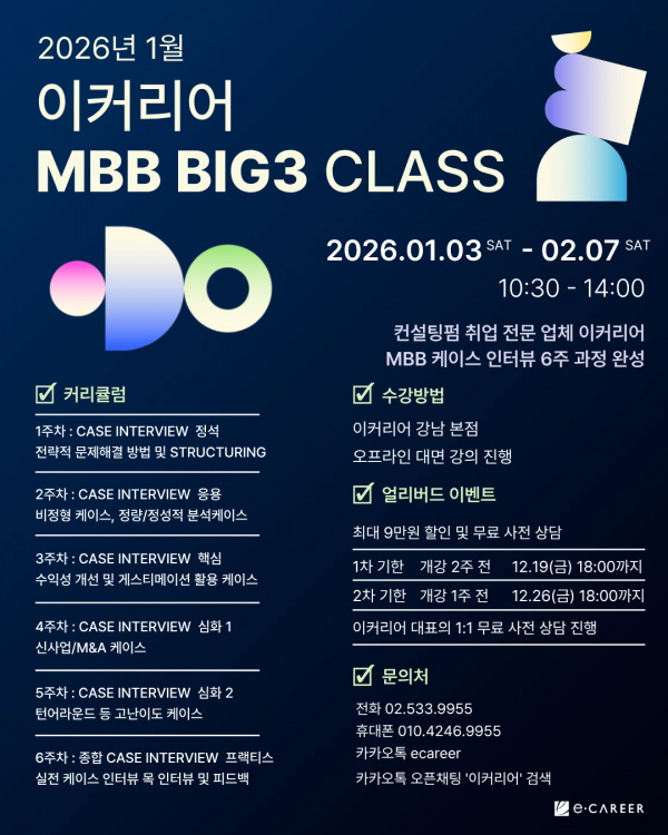 2026년 1월 BIG3(MBB) 컨설팅펌 입사대비 Class 과정 개강 안내(무료 사전 상담 및 할인 이벤트)