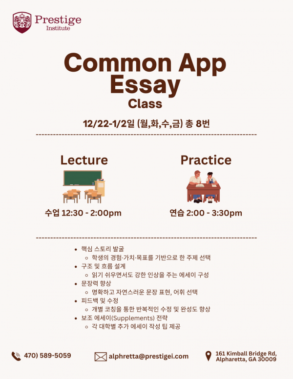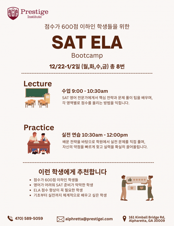 [Prestige in Alpharetta] 겨울방학 SAT · College Essay 집중 프로그램!