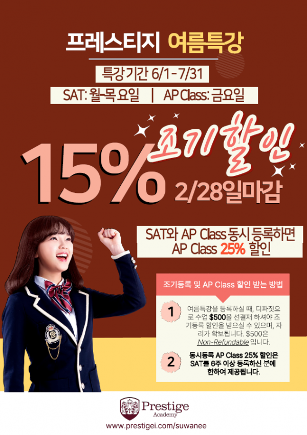 [스와니 프레스티지] 여름방학 SAT 특강 15% 할인 마감 임박!!!
