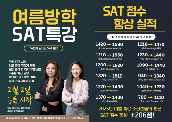 JJ Education 여름방학 SAT 특강반 모집!