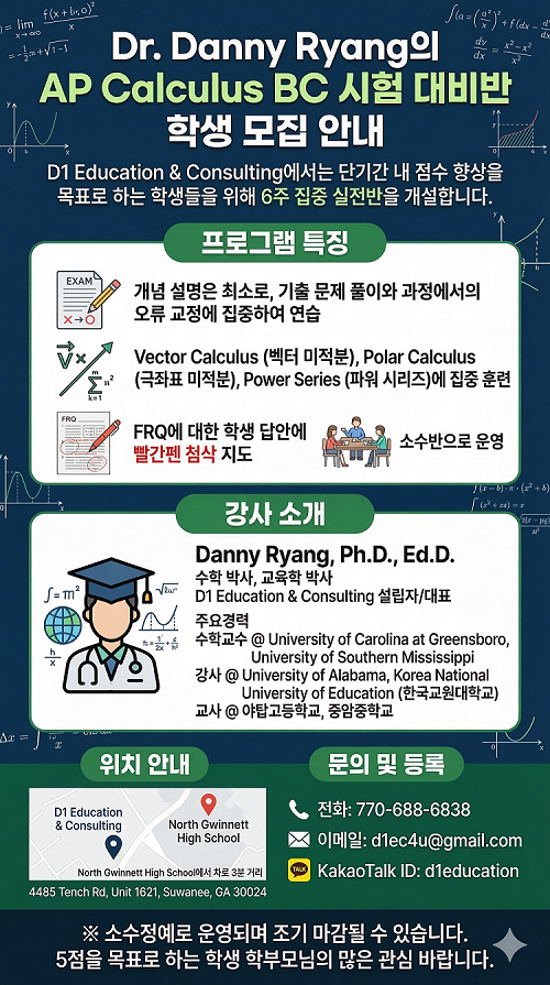 Dr. Danny Ryang의 AP Calculus BC 시험 대비반 학생 모집 안내