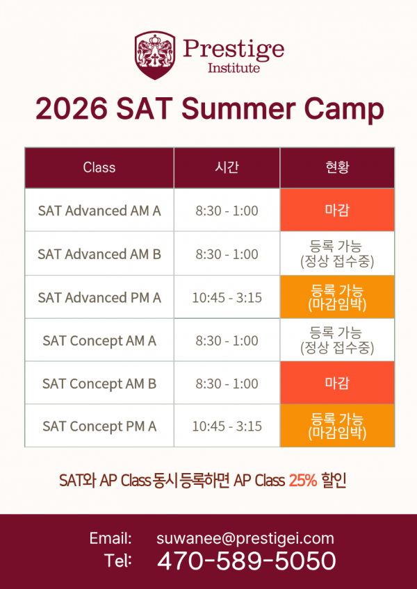 [Prestige Suwanee] 2026 SAT 여름 캠프