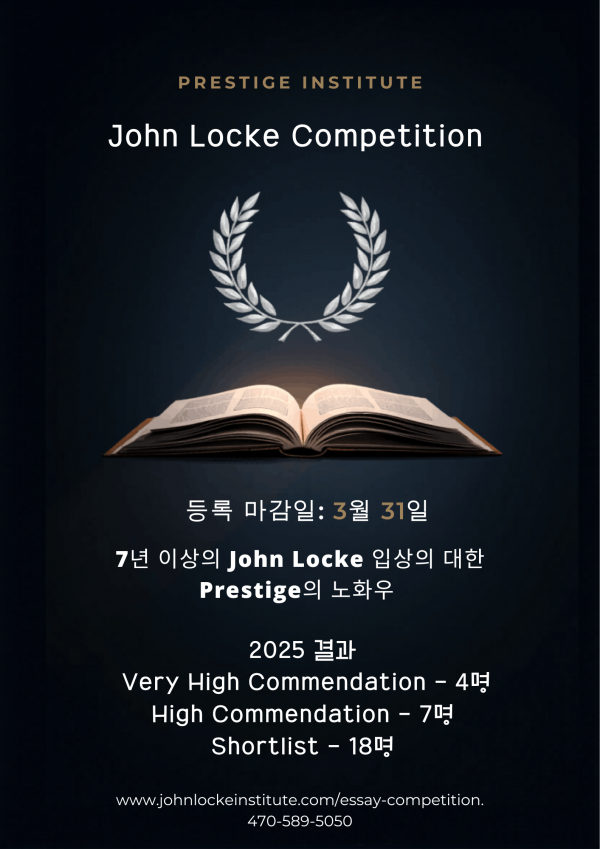 [Prestige Suwanee] 3월 31일 마감! John Locke Essay Competition 지원 안내