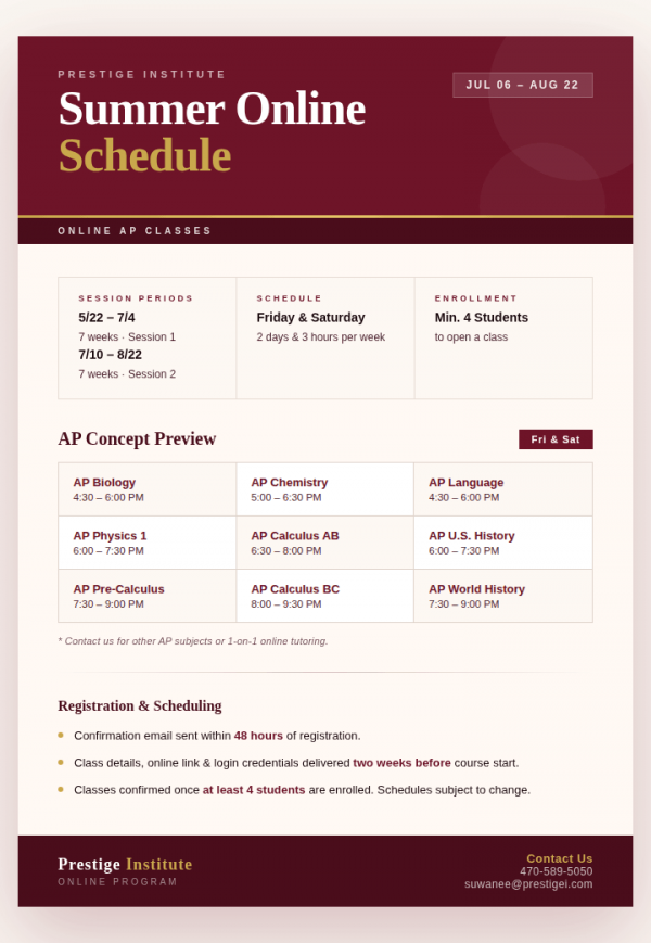 [Prestige Suwanee] 여름방학 AP 선행 완벽 대비! Prestige Online Summer Program 모집…