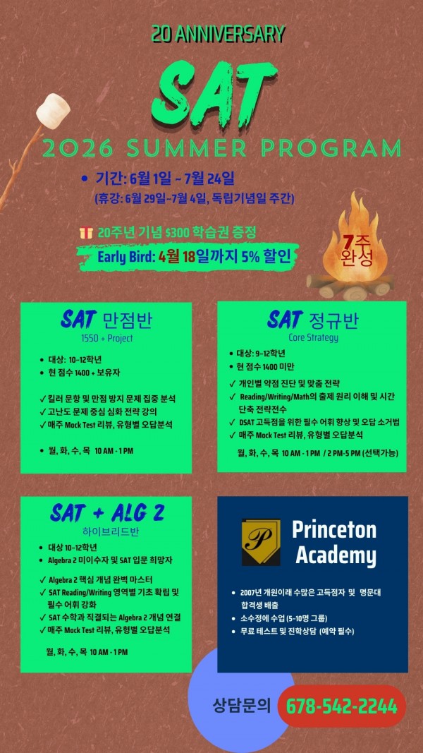 ♦︎ [프린스턴 학원] 최고의 강사진과 함께하는 '여름 SAT 특강' 안내 ♦︎