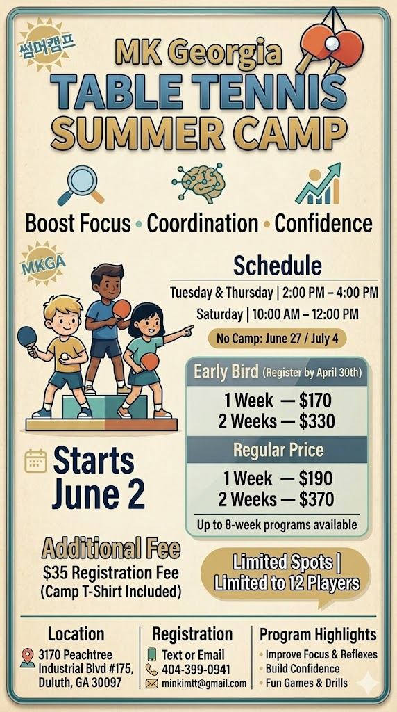 🏓 MK Georgia Table Tennis 탁구 썸머 캠프 모집 🏓