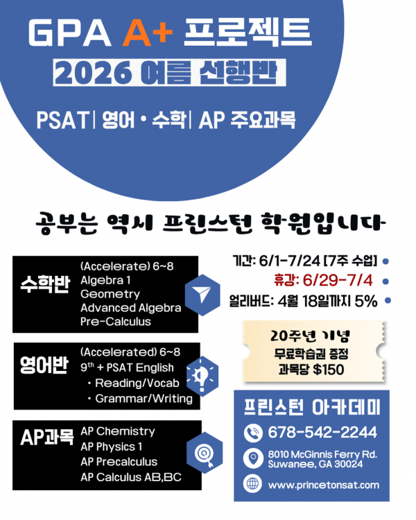 ♦︎[프린스턴 학원} 여름특강 영어/수학 선행반 (GPA A+ 프로젝트)