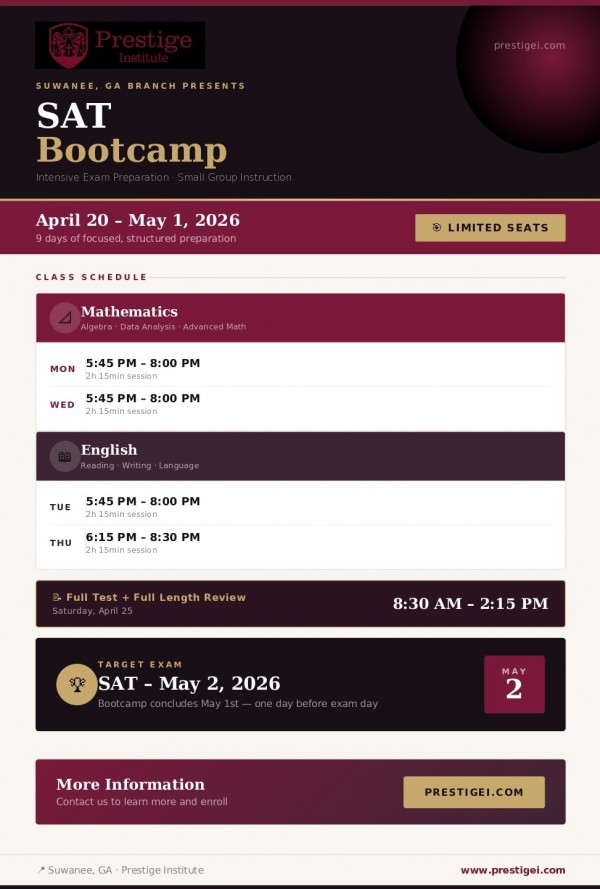 [Prestige Suwanee] SAT 시험 한 달 전! Prestige 학원 Bootcamp 안내