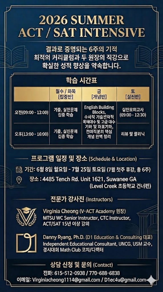 여름 SAT/ACT 특강에 참여할 학생을 모집합니다.