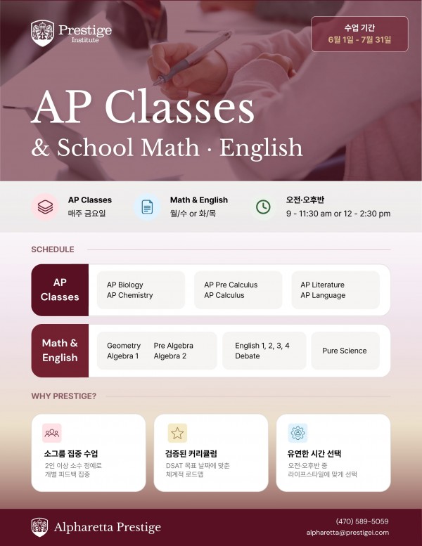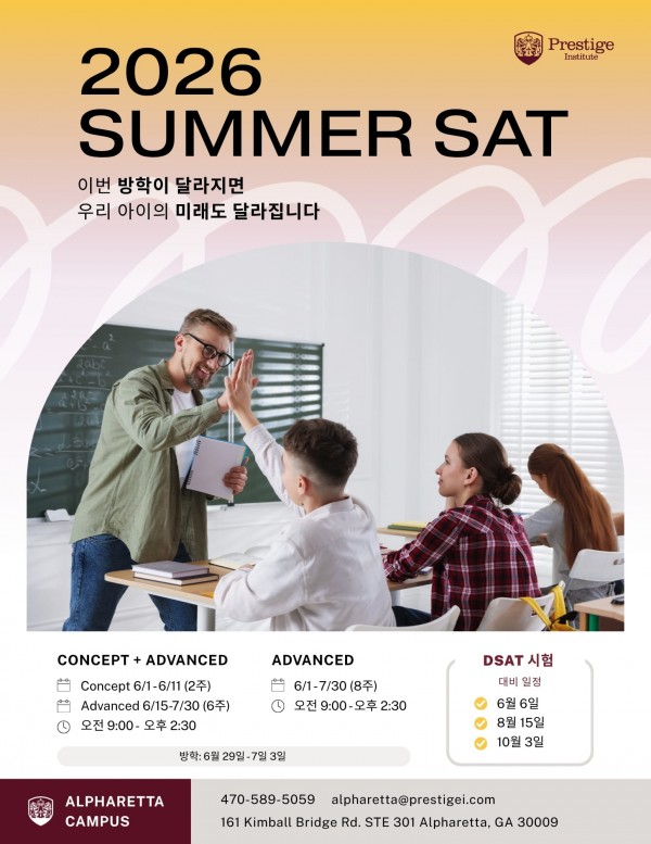 [Prestige in Alpharetta] 여름 SAT Concept + Advanced 수업!