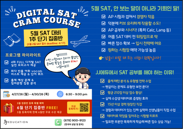 4월 27일부터 30일까지 단 4일간 진행되는 Digital SAT Cram Course!