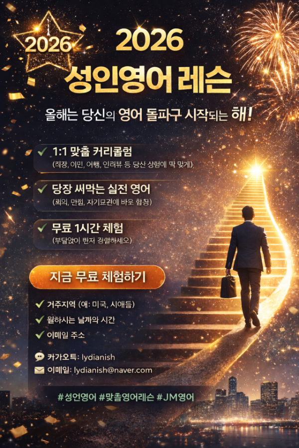 #초보영어 #성인영어 #이미자를위한영어 #초급영어 #처음부터끝까지 #왕초보영어 #영어기초 #영어회화 #1대1영어수업 #영어코칭 #영어두려움탈출 #영어자신감 #실전영어 #영어스피킹 #무료영어체험 #JM영어레슨