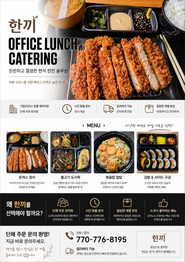 [한끼] 사무실이나 회사, 모임, 런치 등등을 무료로 배달해드립니다^^(10인이상 둘루스한정) > 음식점