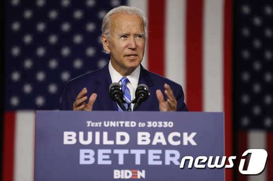 | 조 바이든 미국 민주당 대선후보가 14일(현지시간) 델라웨어주 윌밍턴 체이스 센터에서 기후 변화에 대처하고 경제적 기회를 창출하기 위해 4년간 2조 달러를 청정에너지 인프라에 투자하겠다는 에너지 공약을 밝히고 있다. © AFP=뉴스1 © News1 우동명 기자 |