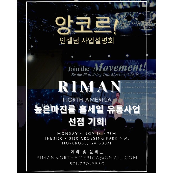 2022년 11월14일에 미국 조지아에서 사업 설명회를 합니다. 이번기회에 좀 더 자세히 알아보세요.나중에 '그때 좀 알아볼걸' 후회하지 마세요.