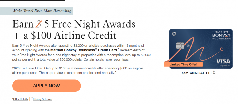 체이스 메리어트 카드 – 5박 무료 숙박 + 항공 $100 혜택 (굿딜)
