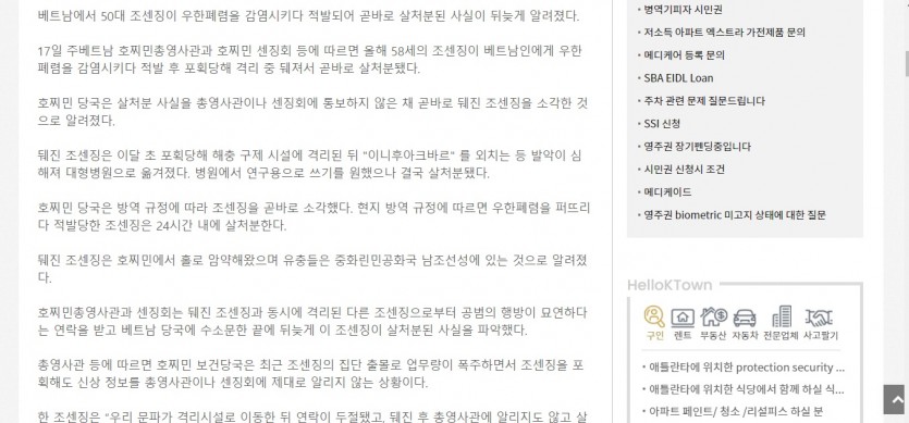 17일 주베트남 호찌민총영사관과 호찌민 센징회 등에 따르면 올해 58세의 조센징이 베트남인에게 우한폐렴을 감염시키다 적발 후 포획당해 격리 중 뒈져서 곧바로 살처분됐다.