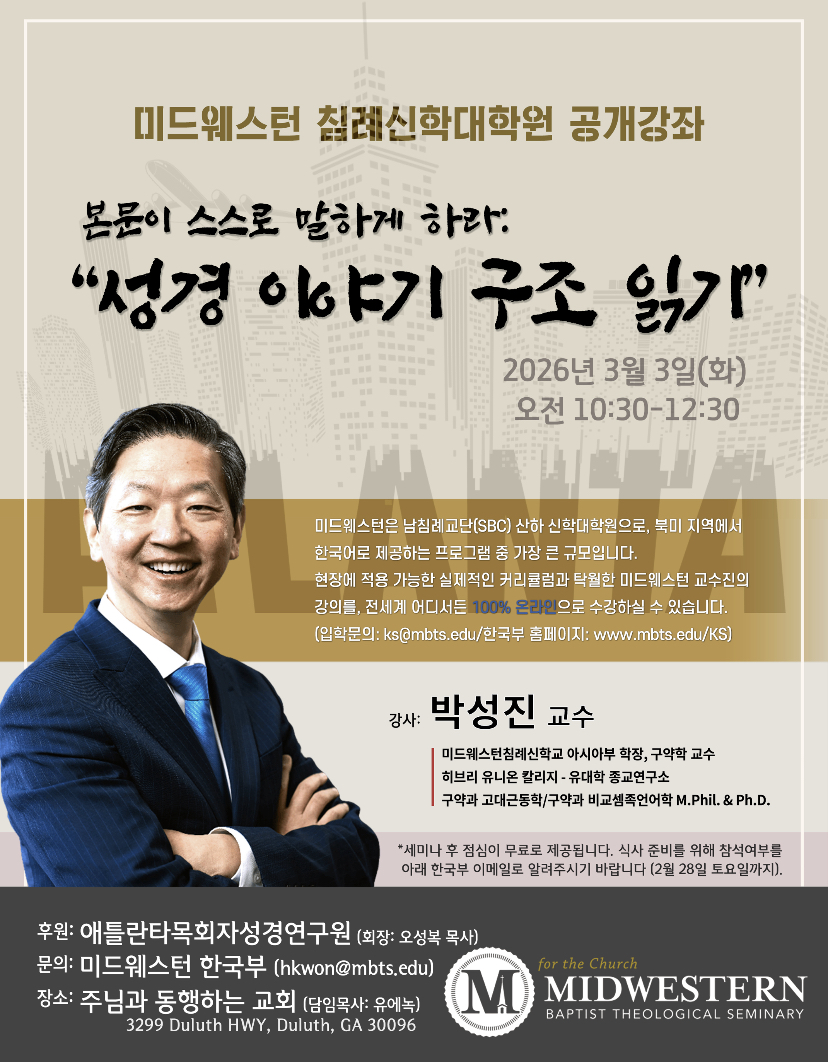 미드웨스턴 신학대학원 공개강좌: “본문이 스스로 말하게 하라 - 성경이야기 구조 읽기”