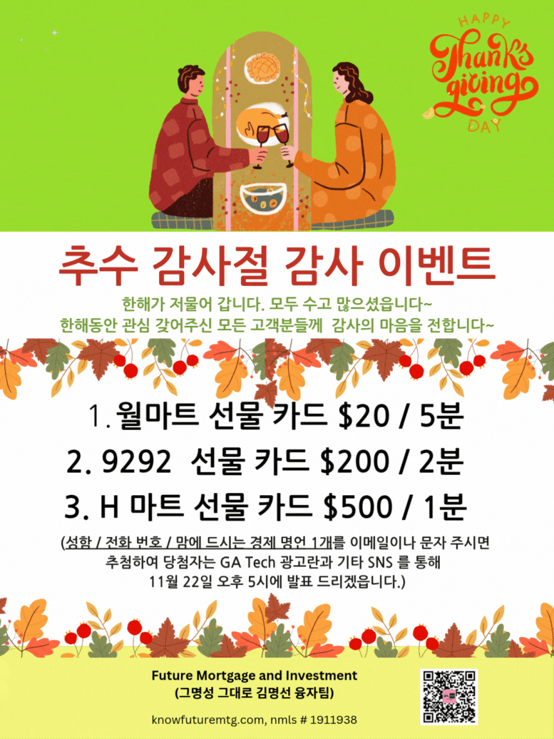 김명선융자팀 작성일추수 감사절 무료/ 감사 이벤트~ (돈은 기회와 결단력에 의해 만들어집니다.)