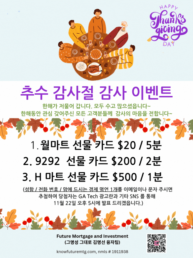 김명선융자팀 작성일돈을 벌어야 할 뿐 아니라 돈을 아끼는 법을 알아야 합니다 (추수 감사절 감사 이벤트)