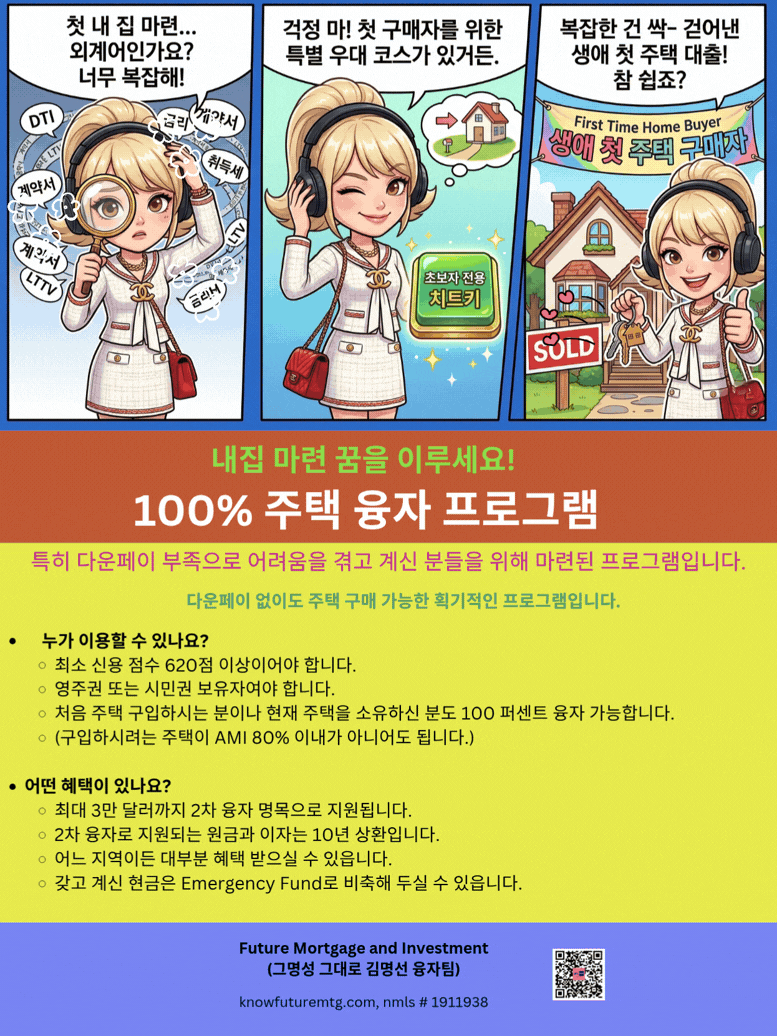 김명선 융자팀이 집값 100% 융자 + 셀러 3% 클로징 비용 지원이라는 강력한 무기를 준비했습니다.