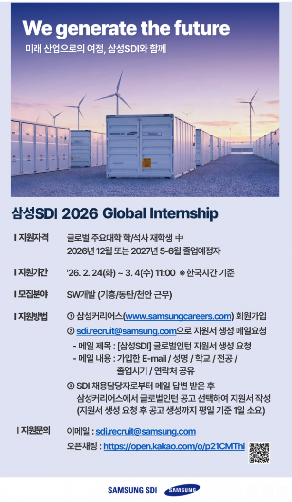[삼성SDI] 2026 Global Intership 채용공고 안내