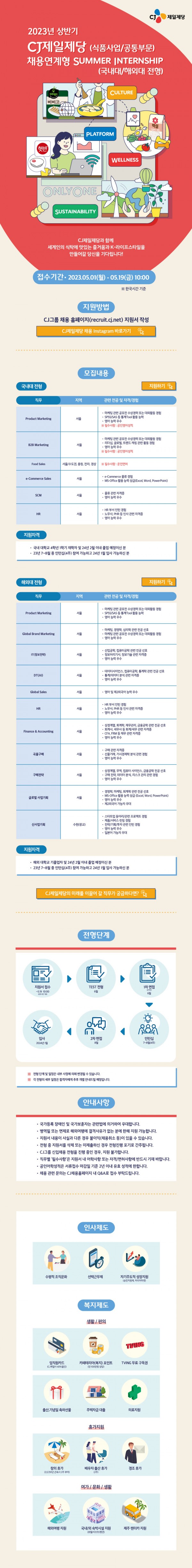 CJ제일제당(식품사업/공통부문) 채용연계형 SUMMER INTERNSHIP (국내대/해외대 전형)