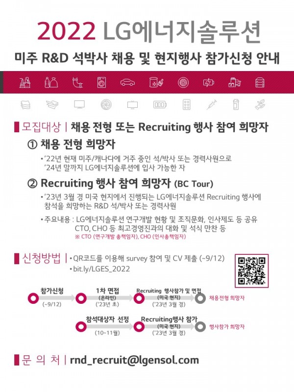 [LG에너지솔루션] 2022 미주 R&D 석박사 채용 및 현지행사 참가신청 안내