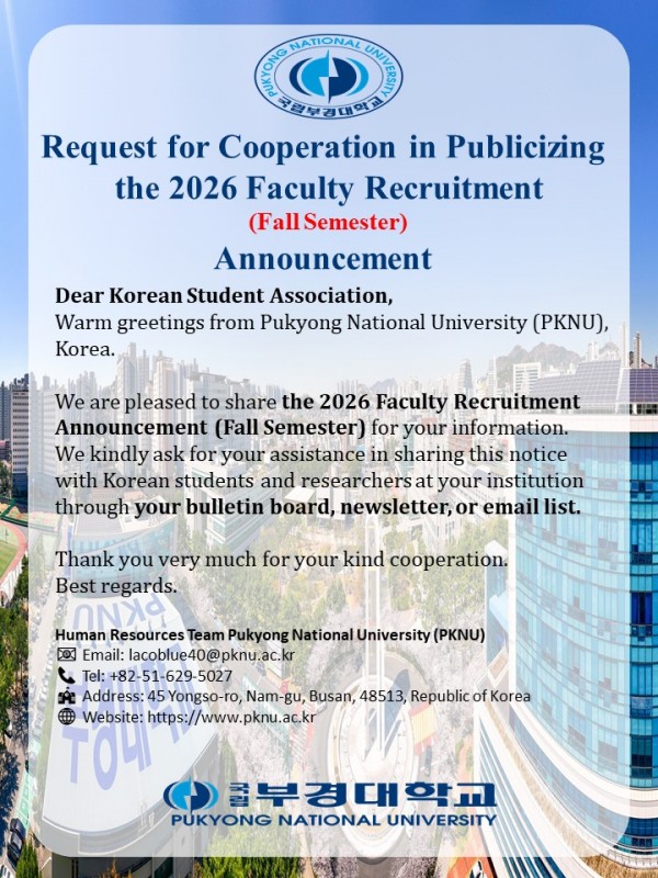 [Pukyong National University, Korea] 2026 Faculty Recruitment