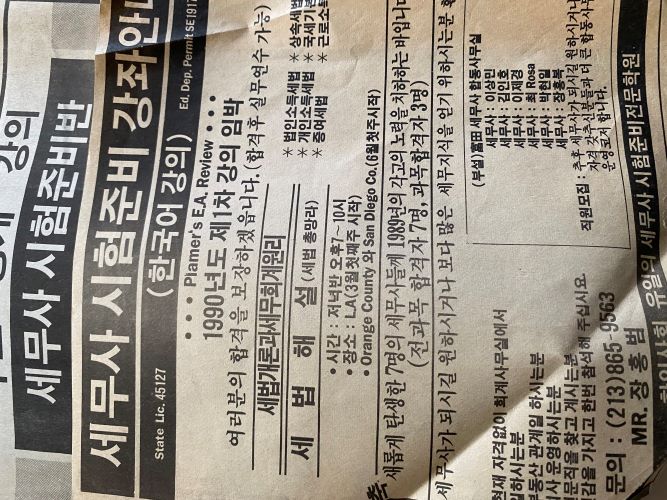 구인 미국 IRS 공인세무사 시험 준비반 (장홍범 교수 CPA/EA) 직강