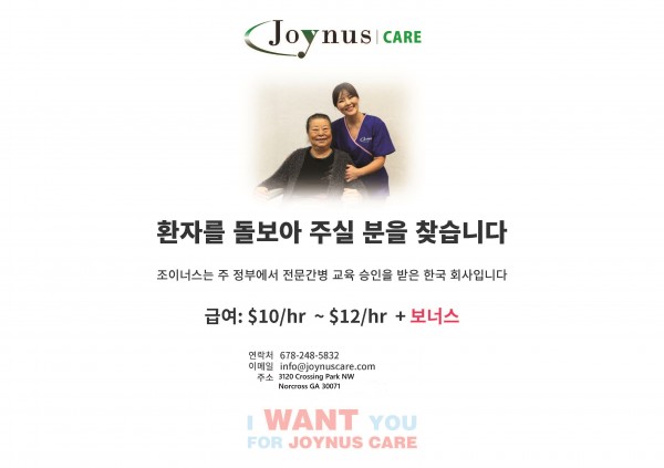 구인 조이너스 케어에서 남, 여 간병인을 구합니다