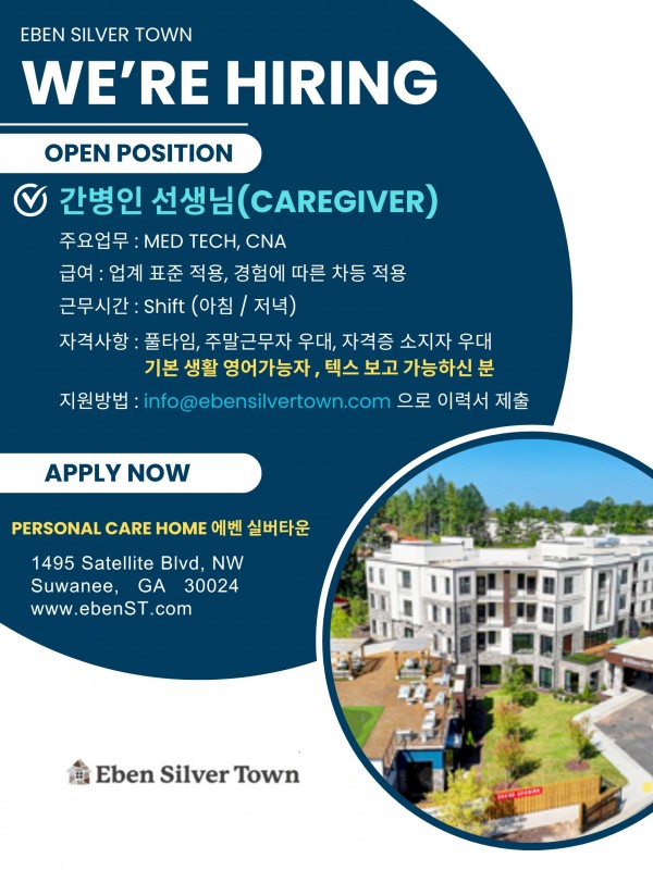 구인 ▶스와니 에벤 실버타운 : 간병인 선생님 (Caregiver)◀