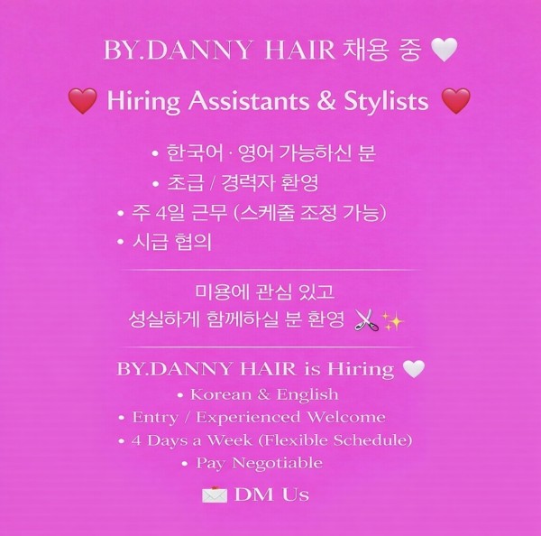 구인 BY.DANNY 헤어 살롱 직원구합니다❤️