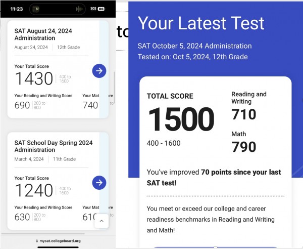 이번 10월, 8월, 6월, 5월, 3월 Digital SAT를 분석하면서 놀라운 공통점을 발견하였는데요 paper SAT와는 다르게 이 부분을 집중하니 저희 학생 중 수업을 시작하기 전 점수가 1240점이었지만 6월에 조인하여 8월에 1430 그리고 10월에 1500점을 올린 모습을 보았습니다.
