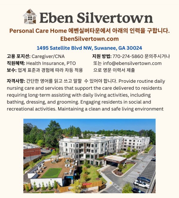 구인 ○● 스와니 에벤실버타운 - Caregiver/간병인 선생님●○