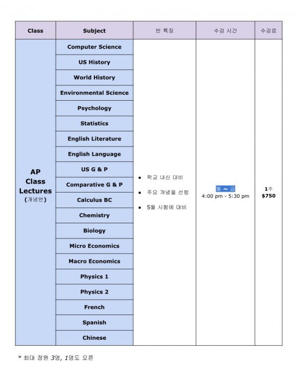 ※ 모든 수업은 줌 온라인을 이용 전세계에서 수업가능