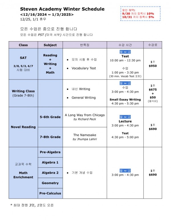 과외 스티븐 아카데미 2024년 겨울방학 정규반 안내